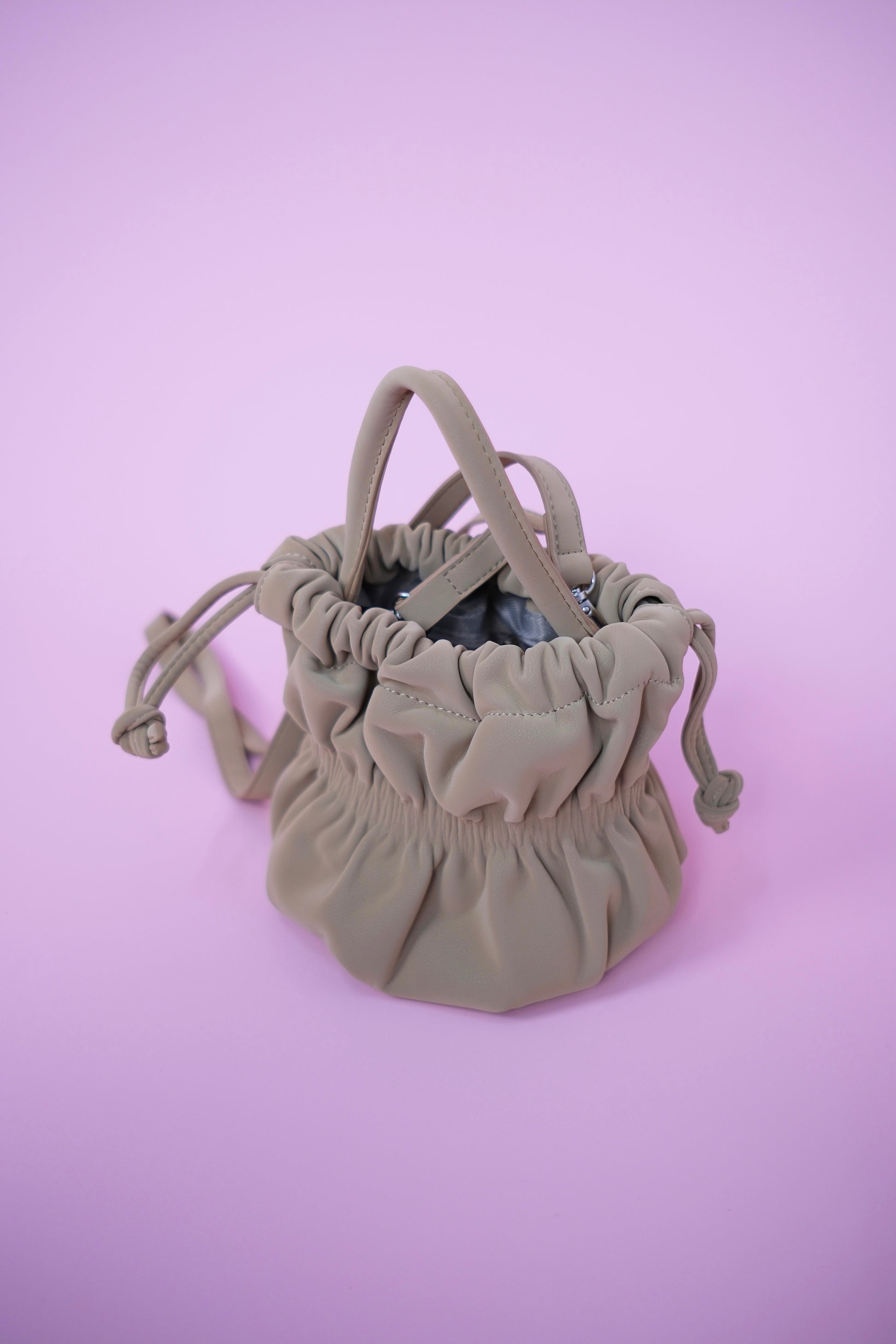 A cute companion from day to night, with a detachable shoulder strap to boot! Features a scrunchy top opening and inner zip pocket.