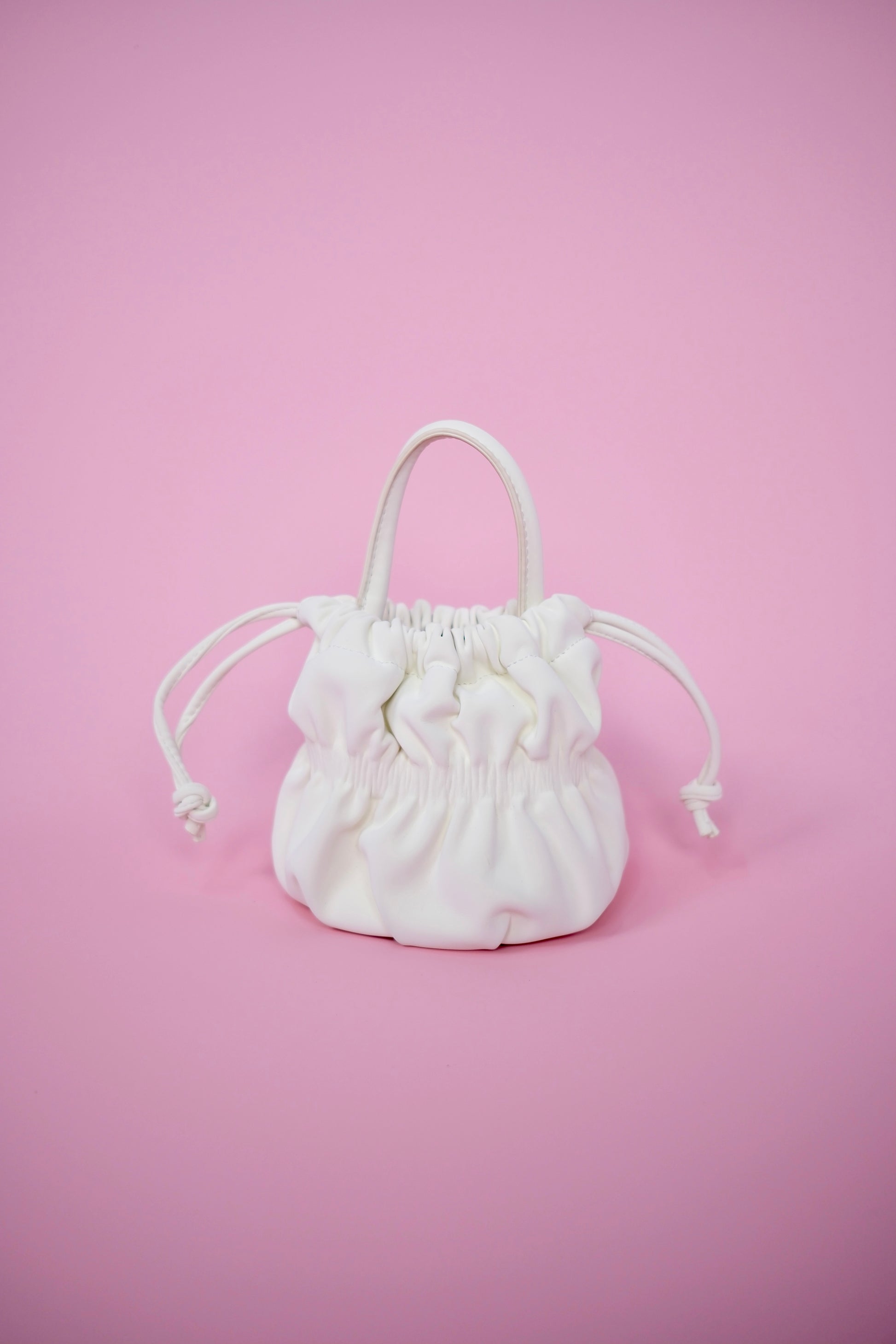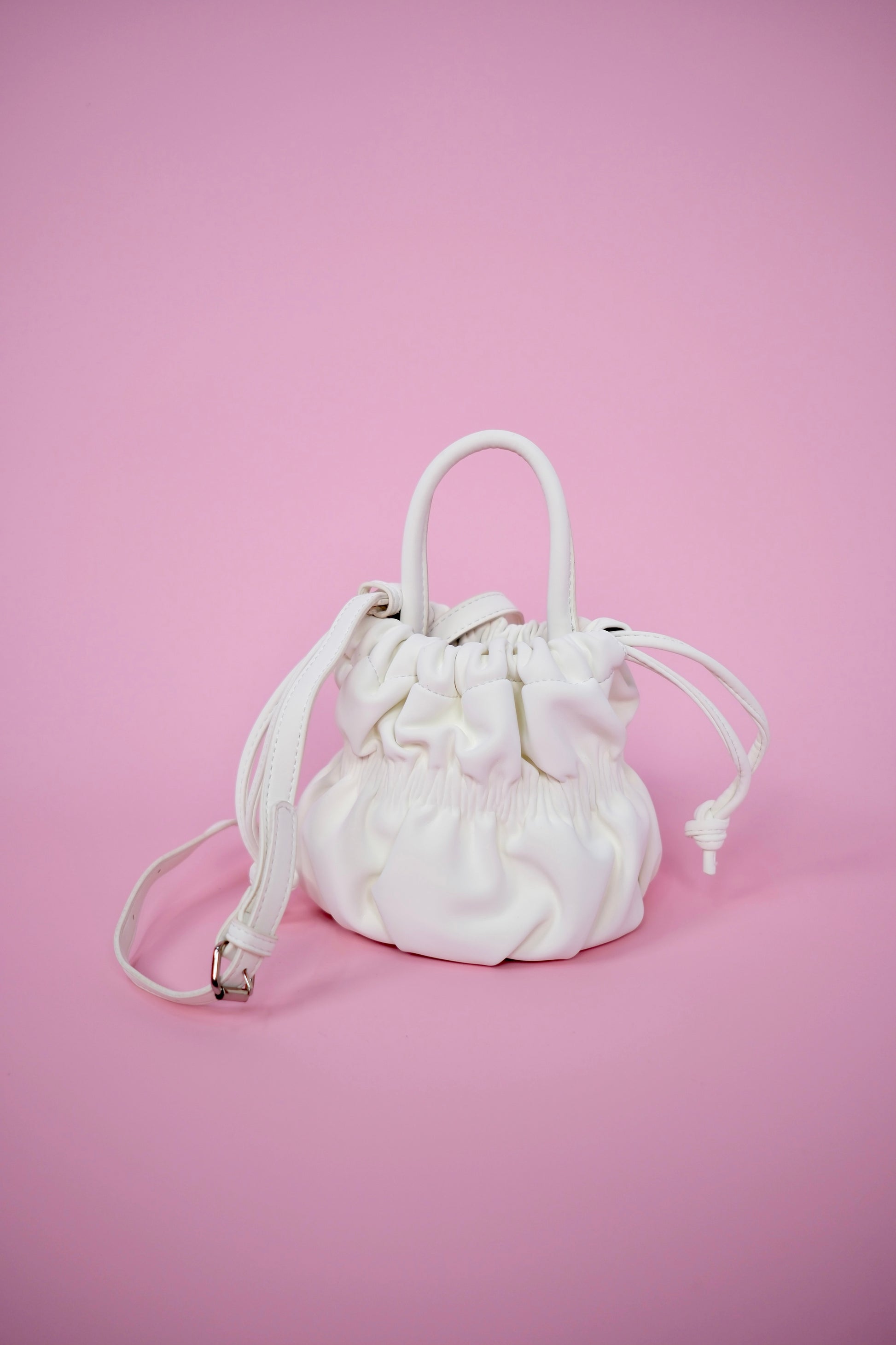A cute companion from day to night, with a detachable shoulder strap to boot! Features a scrunchy top opening and inner zip pocket.