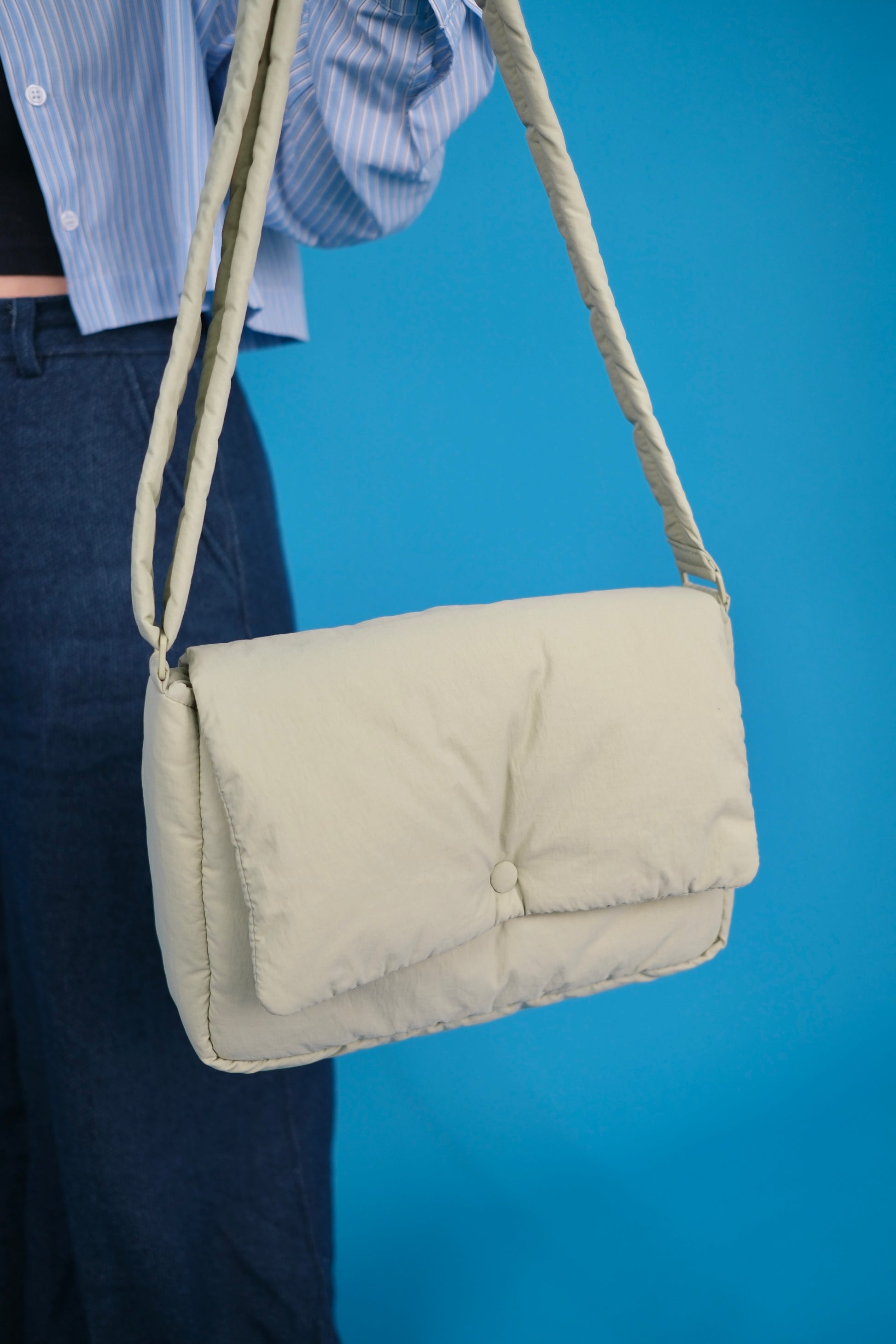 The Cushy Cloud feels and fits like a dream.. Fits your everyday essentials, including an iPad mini, small water bottle and/or brolly. Features a front flap button closure, contrast inner zip pocket and an adjustable strap.